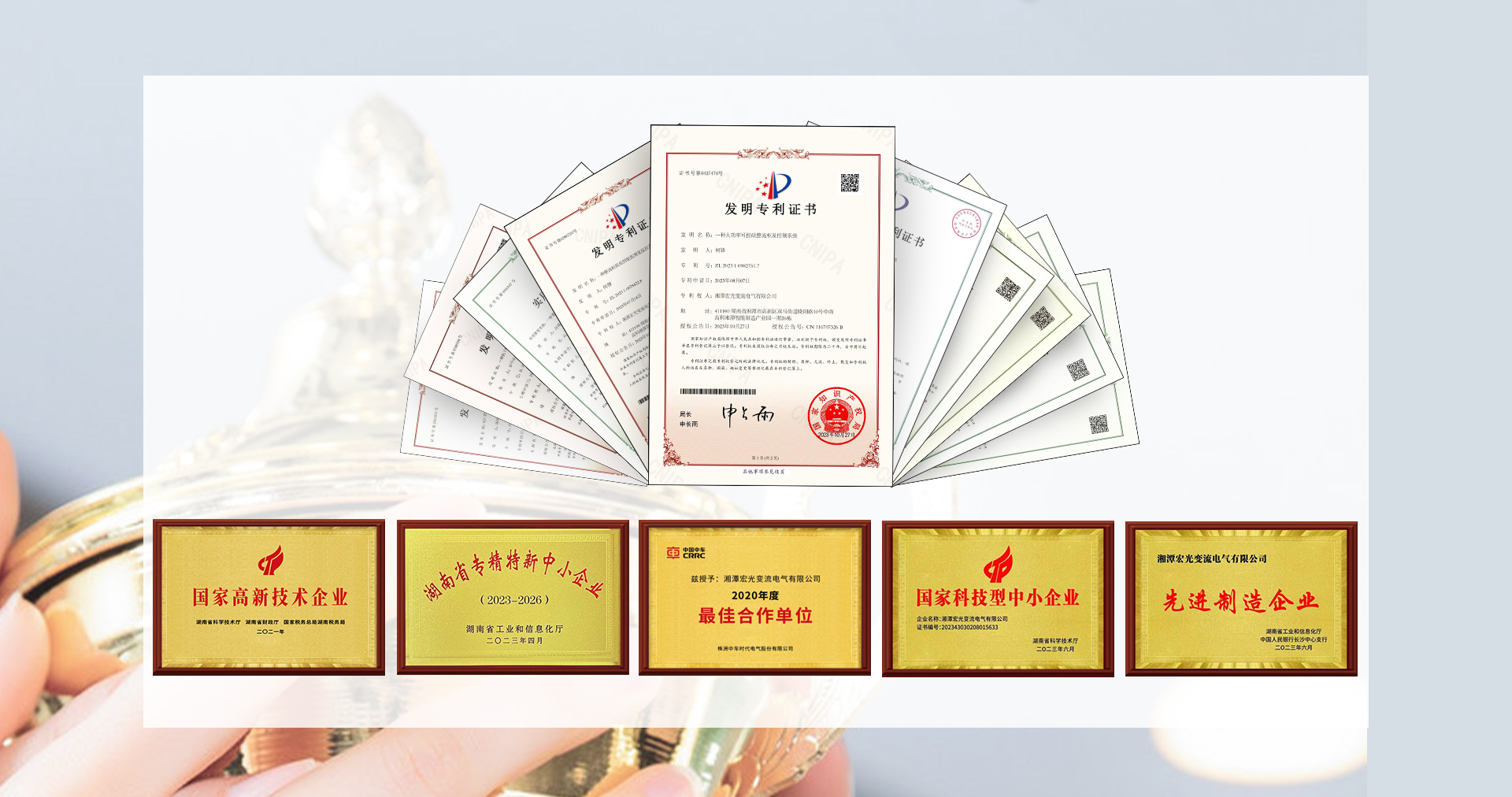 技術(shù)為企業(yè)的第一生命力,公司秉承“專業(yè)、誠信、發(fā)展、卓越”的經(jīng)營理念,始終重視研發(fā)投入和技術(shù)創(chuàng)新。公司先后被評為國家級高新技術(shù)企業(yè)和湖南省專精特新小巨人企業(yè),現(xiàn)有各項(xiàng)專利20多項(xiàng),其中發(fā)明專利4項(xiàng),公司自主研發(fā)的“ZHS-460KA大功率整流器”榮獲湖南省首臺套科技獎(jiǎng)和省級自然科學(xué)基金獎(jiǎng)。